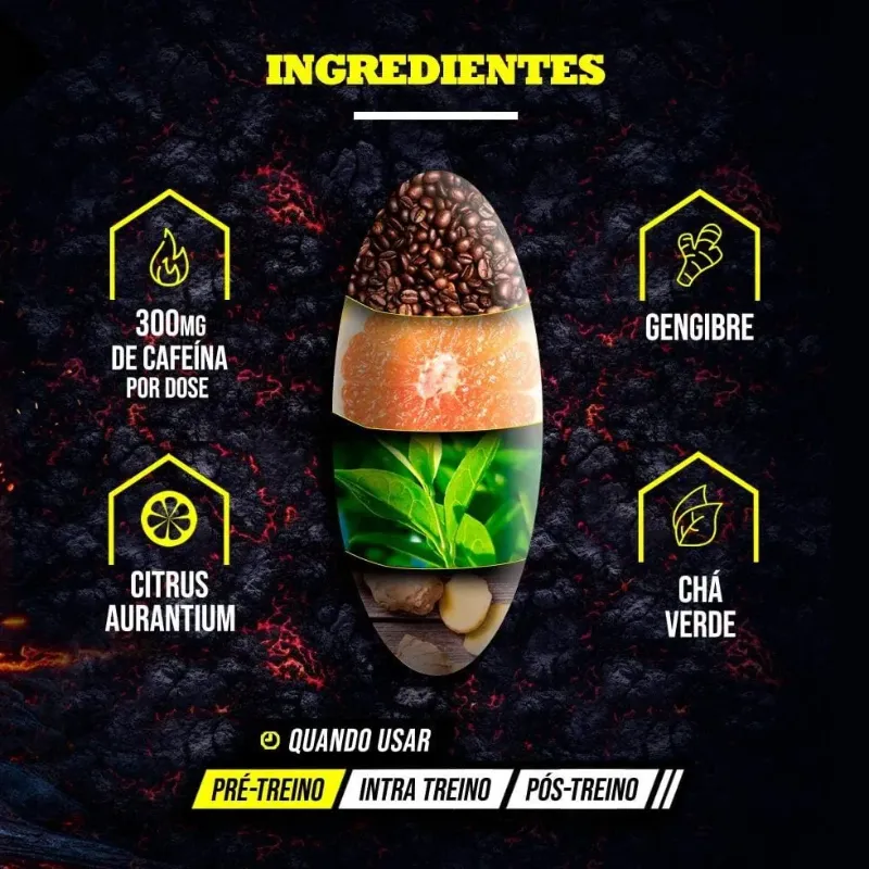 Kimera Thermo - Iridium Labs Esse tipo de suplemento pode ser usado para prevenir deficiências alimentares causadas por alguma patologia ou circunstância específica, além de colaborar com a saúde e o bem-estar geral. É importante destacar que seu uso deve ser acompanhado por uma dieta equilibrada e hábitos de vida saudáveis. A cafeína auxilia no aumento da capacidade de resistência e no desempenho de exercícios físicos de resistência. Recomendado para a atividade aeróbica. A cafeína é um suplemento usado por muitas pessoas que praticam esportes, pois tem muitos benefícios: ajuda a reduzir a sensação de cansaço e a fadiga em exercícios prolongados, permite fazer exercícios mais longos e estimula o sistema nervoso central. Tudo isto o torna o suplemento ideal para atividades aeróbicas. A cafeína auxilia no aumento do estado de alerta e na melhora da concentração, no aumento da capacidade de resistência e no desempenho de exercícios físicos de resistência. *Este produto é um suplemento dietético, não é um medicamento. Suplementa Ante dietas insuficientes. Consulte seu médico e / ou farmacêutico. ""Este produto não deve ser consumido por gestantes, lactantes e crianças"" Ingredientes: Cafeína, aromatizantes naturais (extratos secos de Citrus aurantium, Chá verde e Gengibre), antiumectantes (Carbonato de cálcio e Dióxido de silício), veículo Maltodextrina, estabilizante Croscarmelose, lubrificante Estearato de magnésio, emulsificante Hidroxipropilmetilcelulose, corantes artificiais (dióxido de titânio e amarelo tartrazina) e espessante Talco, veículo polietilenoglicol. NÃO CONTÉM GLÚTEN. ALÉRGICOS: PODE CONTER DERIVADOS DE SOJA.