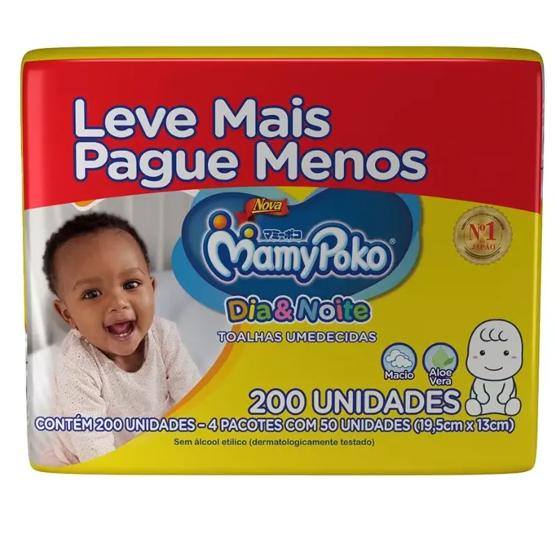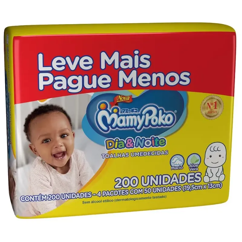 Toalha Umedecida MamyPoko Dia e Noite - 200 Unidades