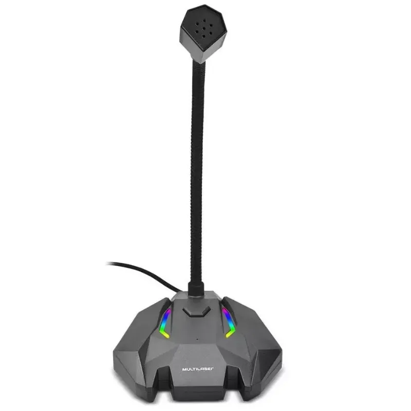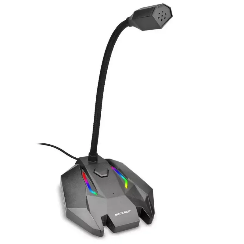 A qualidade do áudio é limpa e sem ruídos, para evitar qualquer interferência ou falha na comunicação. Com um lindo design, o Microfone Gamer conta com base aderente, luzes de LED que darão o toque especial ao ambiente Gamer, corpo em metal flexível e conexão 100 digital.