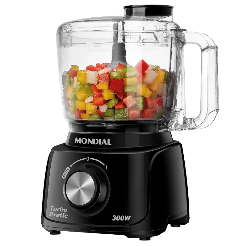 VERSATILIDADE DE RECEITAS: O mini processador Mondial processa, corta, mistura, pica, mói e tritura. Você pode preparar mousses, maionese, moer temperos, triturar queijos e muito mais.
