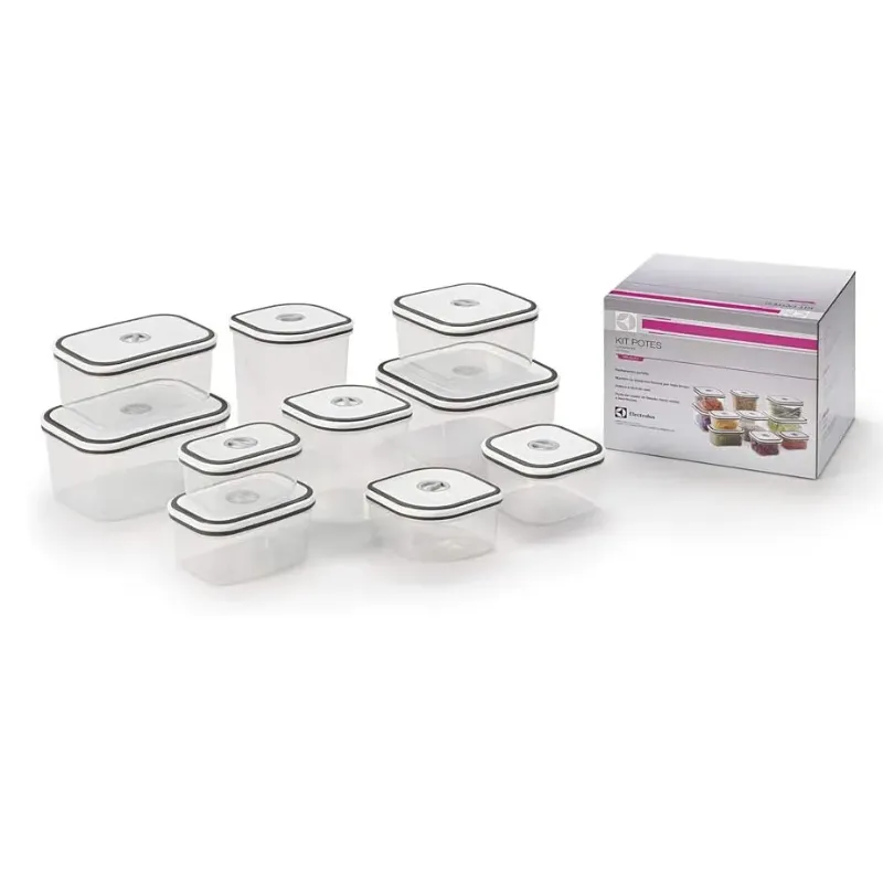 O Conjunto de Potes Electrolux conta com 10 unidades de tamanhos diferentes, sendo ideais para armazenar os alimentos com praticidade e eficiência São produzidos em polipropileno e possuem fechamento hermético, ajudando a manter os mantimentos frescos por mais tempo. Práticos e fáceis de usar, os potes Electrolux também podem ser levados ao micro-ondas e à lava-louças. Além disso, são livres de BPA.