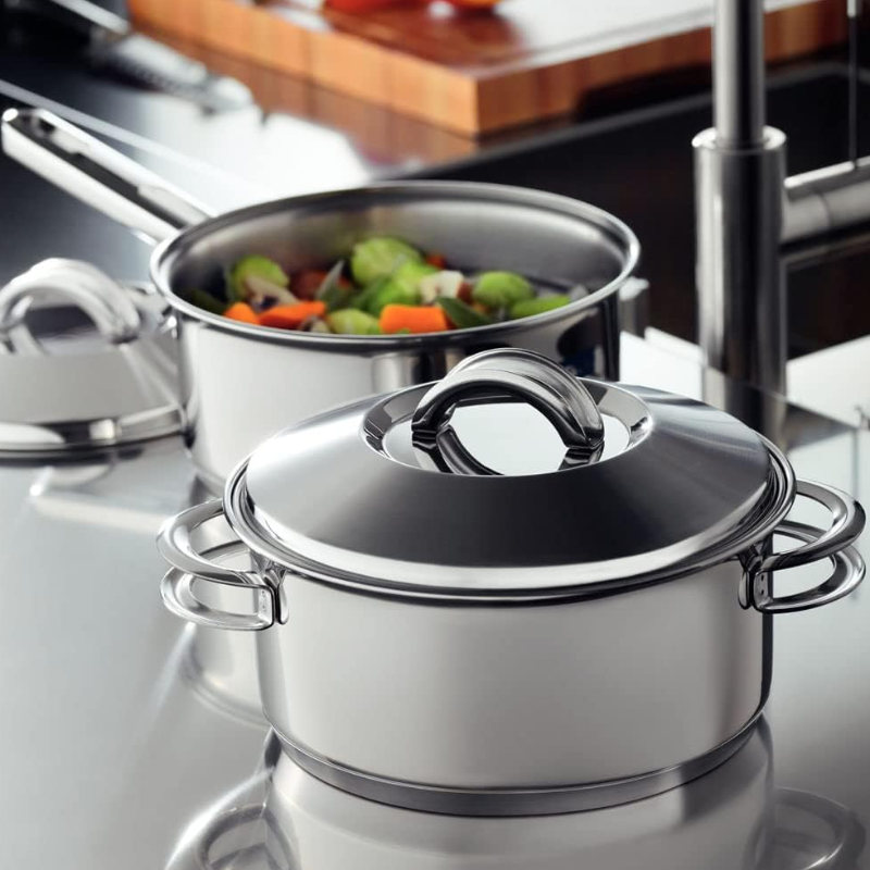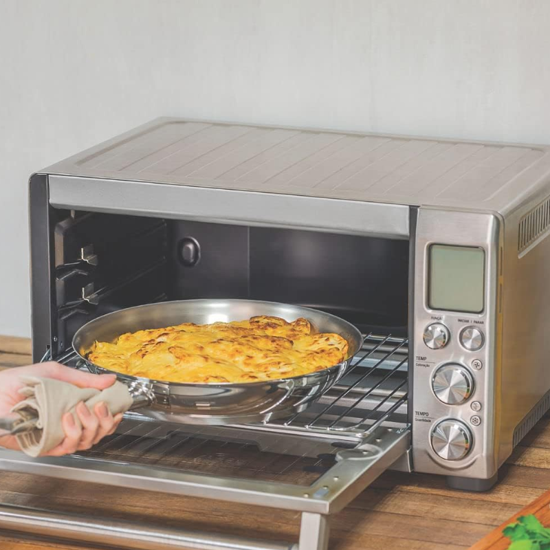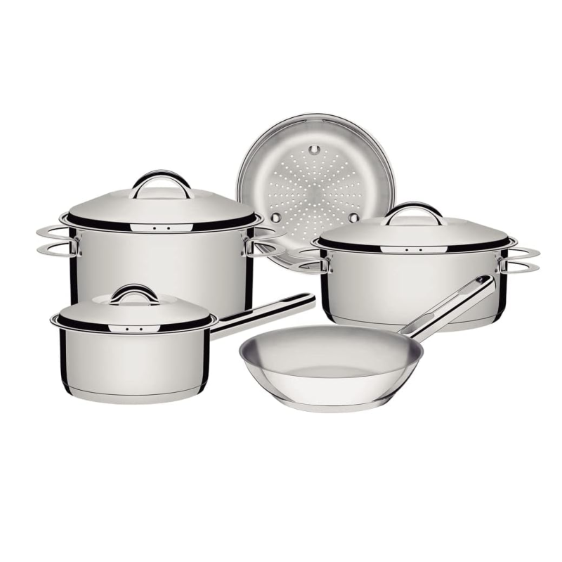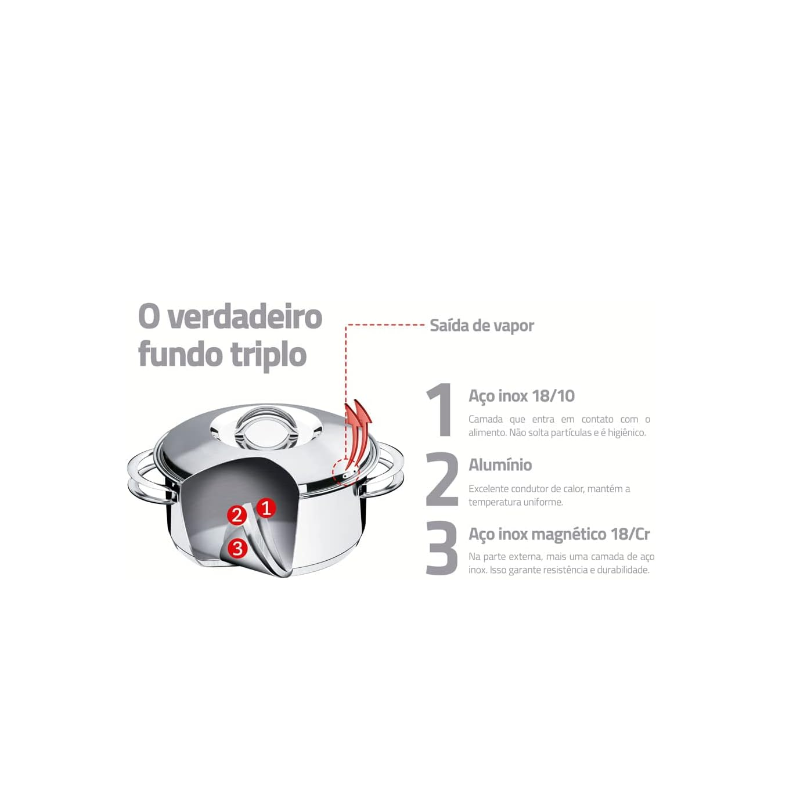 Nada como produtos duráveis e práticos na nossa cozinha. Com o Jogo de Panelas Tramontina Solar em Aço Inox com Fundo Triplo e Tampas de Inox 5 Peças você vai ter peças funcionais perfeitas para auxiliar você nas tarefas do dia a dia. Totalmente produzidas em aço inox, as cinco peças mantém os alimentos saudáveis já que o material não solta resíduos. Trazem ainda a tecnologia de fundo triplo (aço inox + alumínio + aço inox) que distribui o calor uniformemente, proporcionando um cozimento mais rápido e uniforme, economizando energia e deixando os alimentos aquecidos por mais tempo. São peças versáteis que podem ir ao forno para gratinar ou finalizar pratos na temperatura máxima de 260°C e ser utilizadas em diferentes tipos de fogões. São fáceis de limpar devido ao desenho sem cantos, além de poderem ir à máquina de lavar louças diariamente. Além disso, levam mais estiloso para dentro da sua cozinha já que apresentam um moderno acabamento em alto brilho. Acompanham tampas com saída de vapor e encaixe perfeito. Garanta uma cozinha completa com esse jogo de panelas clássico da Tramontina!