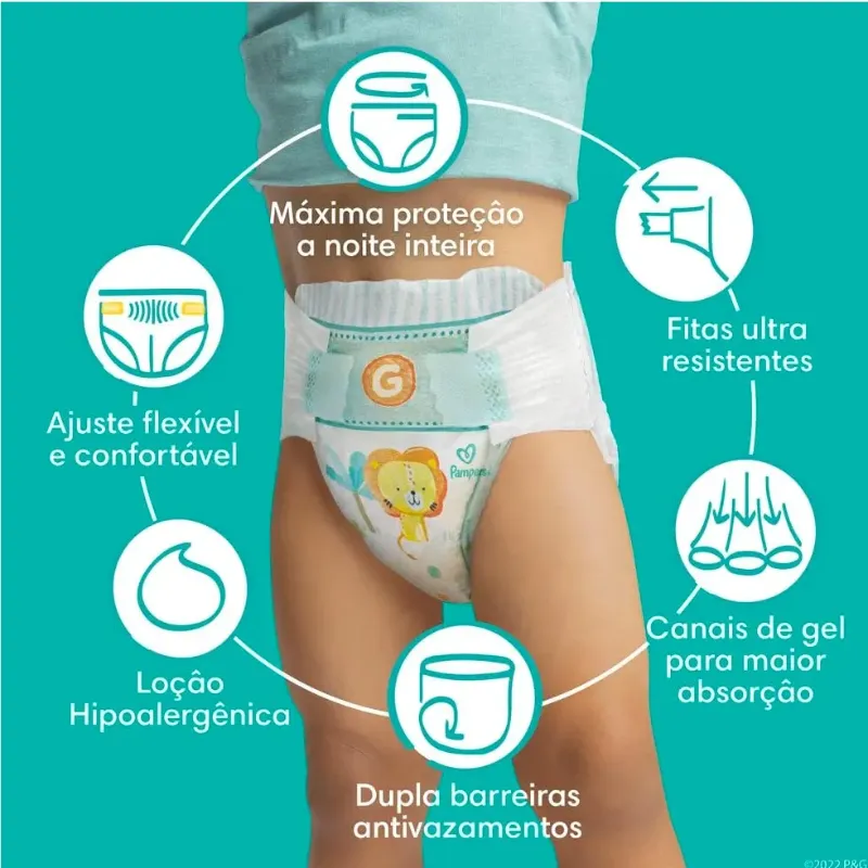 Experimente a NOVA Pampers confort sec com canais de ar! Que permitem que o ar circule livremente dentro da fralda, para o bumbum ficar menos abafado, e a pele arejada e sequinha durante a noite.