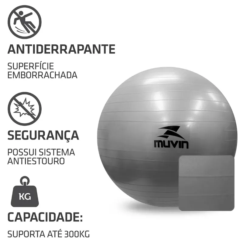 A Bola de Pilates da Muvin é um acessório utilizado para complementar os mais diversos exercícios e recomendada para atividades de fitness, pilates, yoga, fisioterapia, entre outras. Por ser um item extremamente versátil e que possibilita um impacto reduzido na execução da atividade, pode ser utilizado tanto em estúdios e academias, como também em casa.