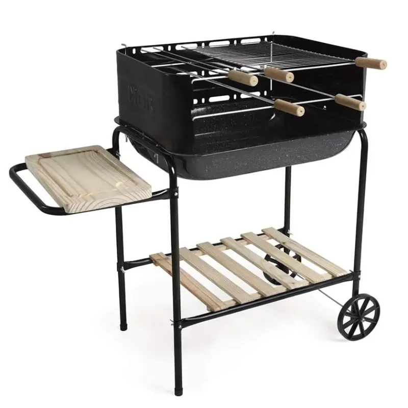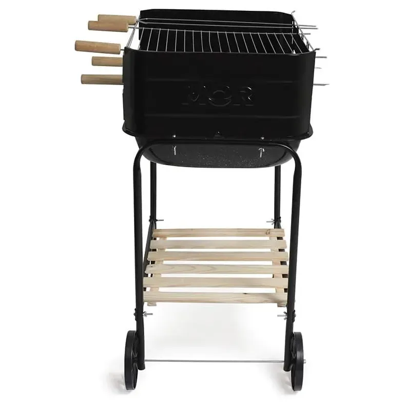 Um bom churrasco é a melhor pedida para uma confraternização, não é mesmo? Foi pensando nisso que a Mor desenvolveu a Churrasqueira Bonanza. Prática de montar, é perfeita para a reunião com a família e os amigos no parque, em casa, na praia ou onde preferir. Com estrutura em chapa de aço esmaltado, pés em tubo de aço, acabamento em pintura preta à base de água, grade para utensílios, tábua para churrasco e rodas para facilitar o transporte, ela é perfeita para todos os tipos de churrasqueiros, do mais requintado até os churrasqueiros de fim de semana! Ela já chega para você equipada com uma grelha com cabo de madeira, dois espetos simples de 58cm e um espeto duplo de 58cm, ou seja, basta comprar seu corte de carne favorito!