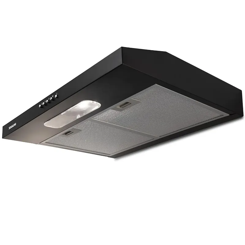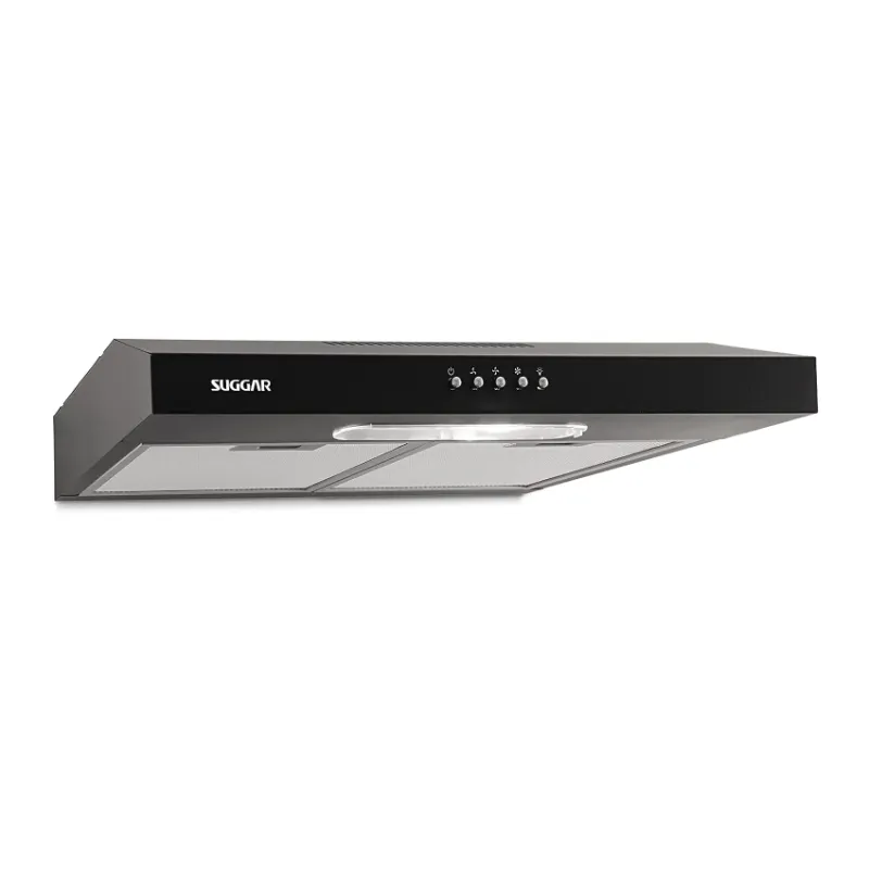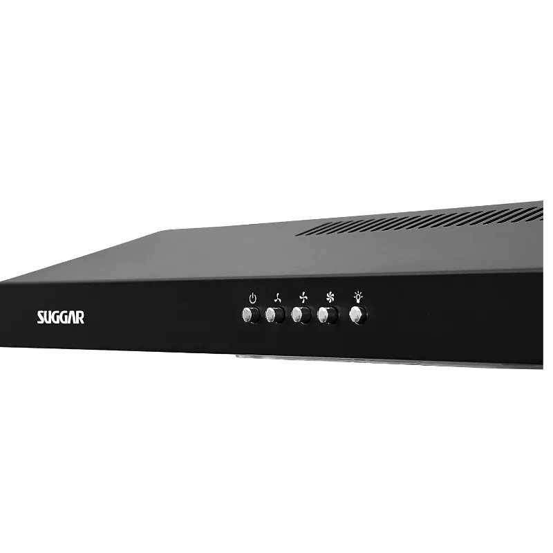 Depurador e coifa de ar Slim preto 60cm 110V Suggar; 3 velocidades; Grande capacidade de sucção; Dupla filtragem: tela de alumínio lavável e filtro de carvão ativado elimina odores indesejado; Baixo consumo 0,11kWh