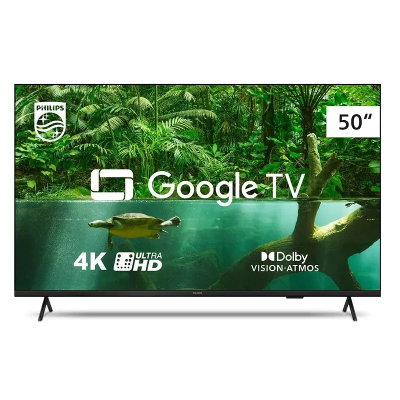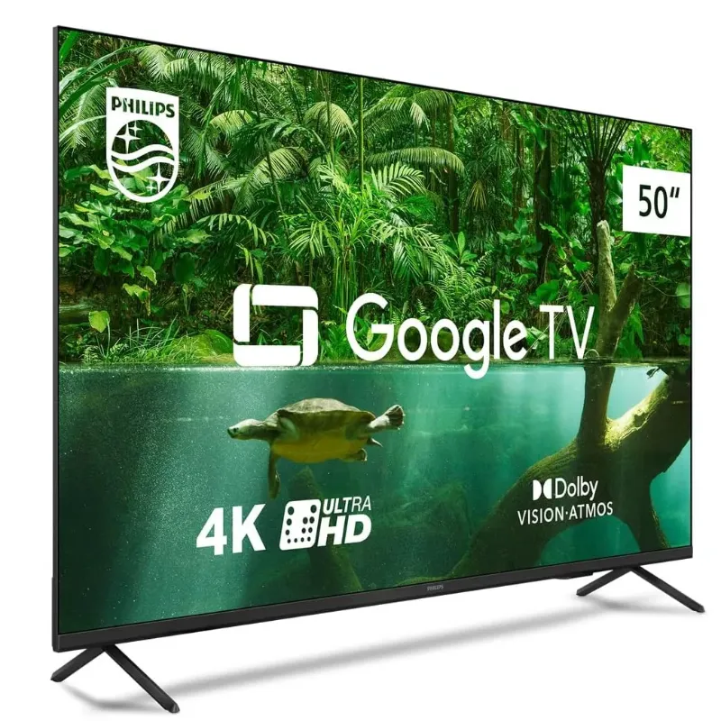 Smart TV Philips Série 7408 - TV 4K mais completa da categoria. - Google TV: Não perca mais tempo buscando pelo que assistir. A plataforma Google TV oferece conteúdos personalizados de acordo com o seu perfil, para facilitar ainda mais no dia a dia. Tenha acesso à Google Play Store e aproveite todo o acervo de apps disponíveis pelo Google. Aproveite ainda o Chromecast Integrado para transmitir ou espelhar o conteúdo de diversos dispositivos. - Comando de Voz Integrado: Google Assistente Integrado ao Controle Remoto para comandar a TV ou realizar buscas facilmente usando apenas a sua voz - Qualidade de Imagem Philips: Equipada com a engine de imagem Pixel Precise UHD, assista a seus conteúdos em imagens 4K de tirar o fôlego. Aproveite para assistir seus filmes e séries favoritos em todos os principais formatos de HDR. - Dolby Vision/Atmos: Aproveite para assistir suas séries e filmes com a mais alta qualidade de imagem e som de cinema. - VRR e ALLM: Desempenho máximo em consoles de nova geração, baixíssima latência e tempo de resposta, sem lags ou rasgos horizontais na tela. - Wifi Dual Band e Bluetooth 5.0: Aproveite a máxima velocidade da sua banda larga e conecte seus dispositivos favoritos com uma conexão bluetooth 5.0. - Design sem bordas: Design elegante sem bordas para se encaixar perfeitamente em qualquer ambiente e aproveitar ao máximo a imagem da sua TV.