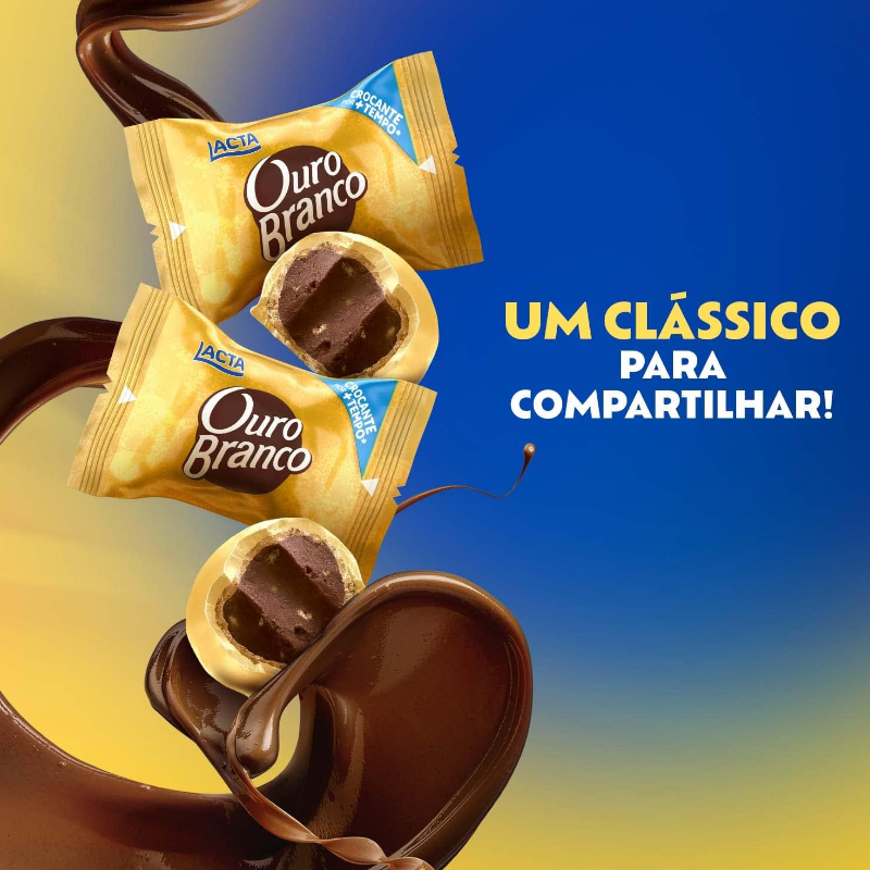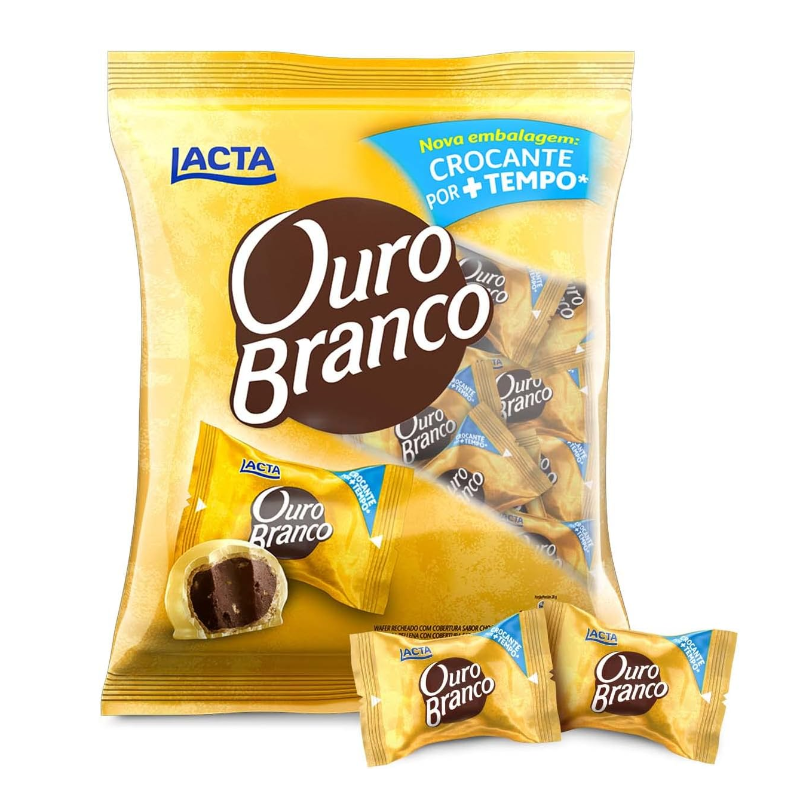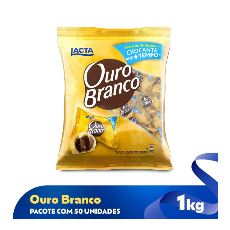 O bombom queridinho dos brasileiros ganhou embalagens herméticas individuais que conservam toda a crocância que Ouro Branco tem por muito mais tempo. Além disso, agora o produto possui o selo de porção controlada, que precisa atender critérios nutricionais pré-estabelecidos para uma ingestão consciente de calorias.A embalagem de 1kg é a opção perfeita para quem prioriza custo-benefício.. Deixe o seu dia mais doce com Ouro Branco!