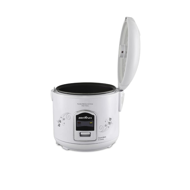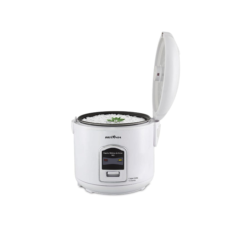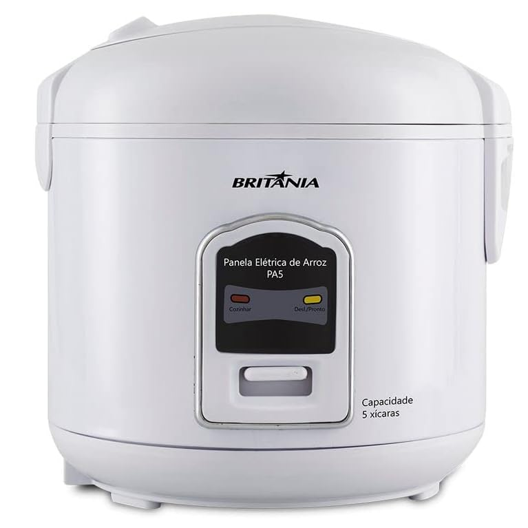 • Fazer arroz não precisa ser complicado, pois a Panela de Arroz Britânia PA5 Prime Preta facilita para você! • Com capacidade para cozinhar até 5 xícaras de arroz, ela será sua amiga do dia a dia; • Conta com tigela de revestimento antiaderente muito mais fácil de limpar; • Acompanha copo dosador e espátula elaborada com material especial para não riscar a tigela; • E para sua segurança, tampa vedada com alça, botão de travamento, saída de vapor e coletor de água.