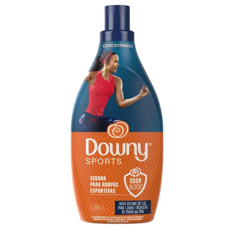 O Amaciante Downy Sports é concentrado e protege suas roupas de odores intensos° proporcionando um perfume duradouro e refrescante. Aventure-se com um perfume levemente amadeirado, combinado com uma seleção de ervas e plantas herbáceas. Sua fórmula pode ser usada tanto para suas roupas do dia a dia quanto para suas roupas esportivas, cuidando das fibras e cores dos tecidos. Além de super cheirosas, as roupas também ficam macias e fofinhas, muito fáceis de passar. O amaciante da marca Nº1 do Brasil¨ tem um alto rendimento, de até 60 lavagens, pois a embalagem de 1,35L equivale a 5,4 litros de um amaciante diluído comum^. Para utilizar o seu amaciante Downy não tem segredo, é só adicionar a dose indicada na embalagem no dispenser da máquina de lavar ou diretamente na água durante o último ciclo de enxágue, para um perfume sofisticado e que dura mais*. Modo de Usar: Para lavadoras de 9 a 14 kg ou lavagem à mão, utilize 1/3 de tampa (22,5 ml). Para mais perfume ou lavadoras maiores (+15 kg), utilize 1 tampa. O amaciante Downy concentrado Sports rende até 60 lavagens. Proteção contra odores intensos, com tecnologia odor block°, e roupas esportivas macias para uma aparência incrível. Downy Sports é um amaciante concentrado equivalente a 5,4L de amaciante comum^. Sua fórmula proporciona uma fragrância que você sente a cada toque. Amaciante da marca Nº1 do Brasil¨ e recomendado pela Electrolux. Para obter o resultado ideal com o amaciante, que deixe roupas macias, fáceis de passar e protegidas de odores° com perfume prolongado, use a quantidade indicada na embalagem.