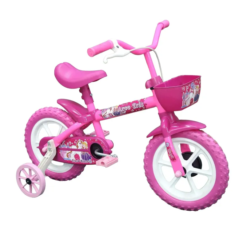 Bicicleta infantil Aro 12, com cestinha plástica e certificado de segurança INMETRO. Ideal para as primeiras pedaladas!