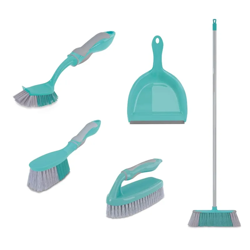 O Conjunto Limpeza Multiuso é perfeito para sua casa ou escritório. A escova para mesa remove migalhas e pequenas partículas de diversas superfícies. Conte com a firmeza das cerdas da escova de lavar louças para tornar a limpeza das peças mais efetiva e prática ou aproveite seu design ideal para limpeza de calçados. Para lavar roupas conta com cabo anatômico e cerdas firmes. Além disso, a vassoura com cantos emborrachados evita o desgaste ou quebra de móveis causados por pequenas batidas durante a varrição. Para finalizar, a pá comporta grande quantidade de detritos e possui acabamento emborrachado, fazendo com que a sujeira seja recolhida em sua totalidade.