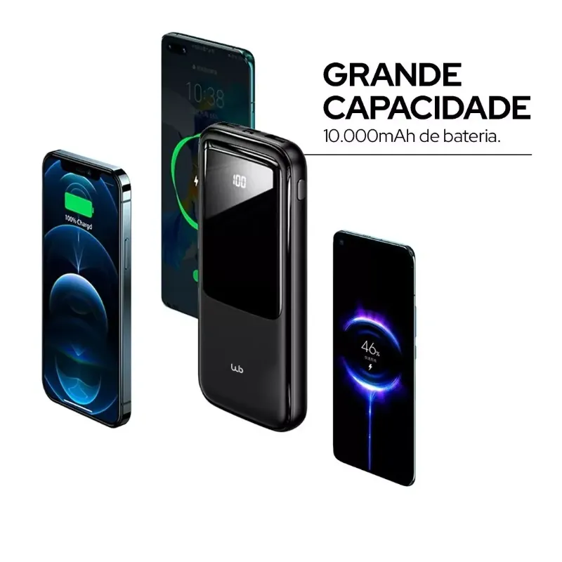 Se mantenha sempre conectado com tudo e todos, o Power Bank WB lhe oferece 10000 mAHh, tem a capacidade de carregar de 2 a 3 vezes seu smartphone fornecendo praticidade para você viajar, ir a shows, eventos, trabalho e muitos outros lugares sem passar perrengue. Além de tudo isso, também é possível carregar até 2 dispositivos simultaneamente sem danificar a bateria.