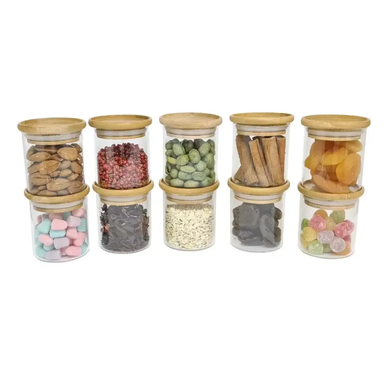 Potes de Vidro P/ Mantimentos C/ Tampa Bambu,10 Pçs Oikos