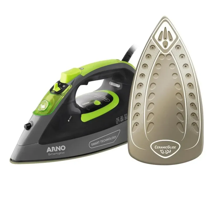 Dados do ProdutoO Arno Smartgliss é o ferro inteligente que não queima suas roupas! É seguro, pois possui Desligamento Automático após período de inatividade de 30 segundos na horizontal e 8 minutos na vertical, e não tem seletor de temperatura. O ferro é pré-ajustado para passar qualquer tipo de tecido, graças à exclusiva Smart Technology, que mantém a temperatura constante e ideal para passar do jeans à seda. Sua Base de Cerâmica é ideal para quem procura resultados rápidos. O Arno Smartgliss é um ferro ergonômico, com sistema Corta-Pingos, tanque de água de 200ml, Vapor Vertical + Spray, super Vapor Extra de até 90g/min para eliminar os vincos facilmente. O Arno Smartgliss conta ainda com a Função Eco para economizar energia versus o modo normal. Quer um ferro inteligente que não queima suas roupas?Especificações do produtoConteúdo da Embalagem1 ferro + 1 manual de instruções + folheto de garantiaPotência (Watts) - 1520WConsumo (kW/h*/mês) - 12,16Garantia - 12 meses por defeitos de fabricaçãoTipo de Material - Plástico + Alumínio + Base CerâmicaComp. Cabo (m) - 2cmPorta-Fios - NãoTipo de Embalagem IndividualCaixa IndividualLargura - 28,5cmAltura - 13,5cmProfundidade - 11,6cmPeso - 1350gComprimento c/embalagem - 30,6cmLargura c/embalagem - 15,6cmAltura c/embalagem - 13,4cmPeso c/embalagem - 1650gClaim - O ferro inteligente que não queima as suas roupasDescrição O Arno Smartgliss é o ferro inteligente que não queima suas roupas! Graças à exclusiva Smart Technology, o ferro mantém uma temperatura constante e ideal para passar do jeans à seda, sem seletor de temperatura!Produto não é Bivolt 127v