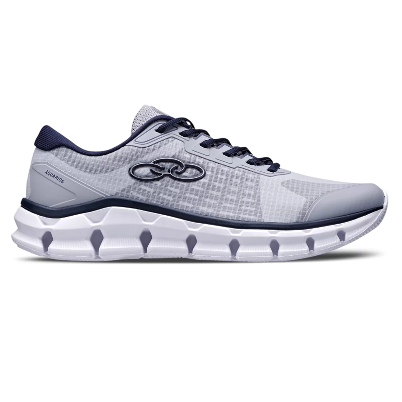 O Olympikus Aquárius é o tênis ideal para quem busca conforto para as caminhadas. Seu solado possui a tecnologia de amortecimento Evasense, que proporciona leveza, maciez e maior flexibilidade para as atividades diárias. Além da tecnologia aparente de furos e pintura na parte superior da sola. Seu cabedal é confeccionado em tela de mofilamento sobreposta a tecido de poliéster com impressão digital. Conta com forro em tecido poliéster com espuma, atacador composto por tecido poliéster texturizado e lingueta em tecido dupla frontura com alta capacidade de transpiração com etiqueta de sintético em high frequency com aplicação gráfica bicolor. Possui ainda biqueira, peça localizada na região traseira, vista e logo em high frequency com detalhe de aplicação gráfica. Sua palmilha é plana, composta por tecido poliéster e EVA, com aplicação gráfica.
