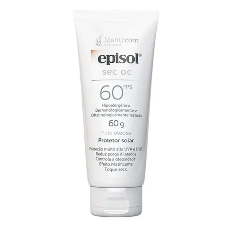 Episol Sec OC é uma linha de protetor solar indicada para pele oleosa. Devido a sua tecnologia Skin Self Control com ativos que agem diretamente na glândula sebácea. Episol Sec OC controla a oleosidade da pele por 12h, reduz os poros e proporciona sensação de pele limpa com toque seco e efeito matificante.