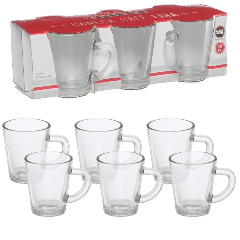 Jogo de Canecas de Café de Vidro 70ml Hauskraft - Lisa 6 Peças
