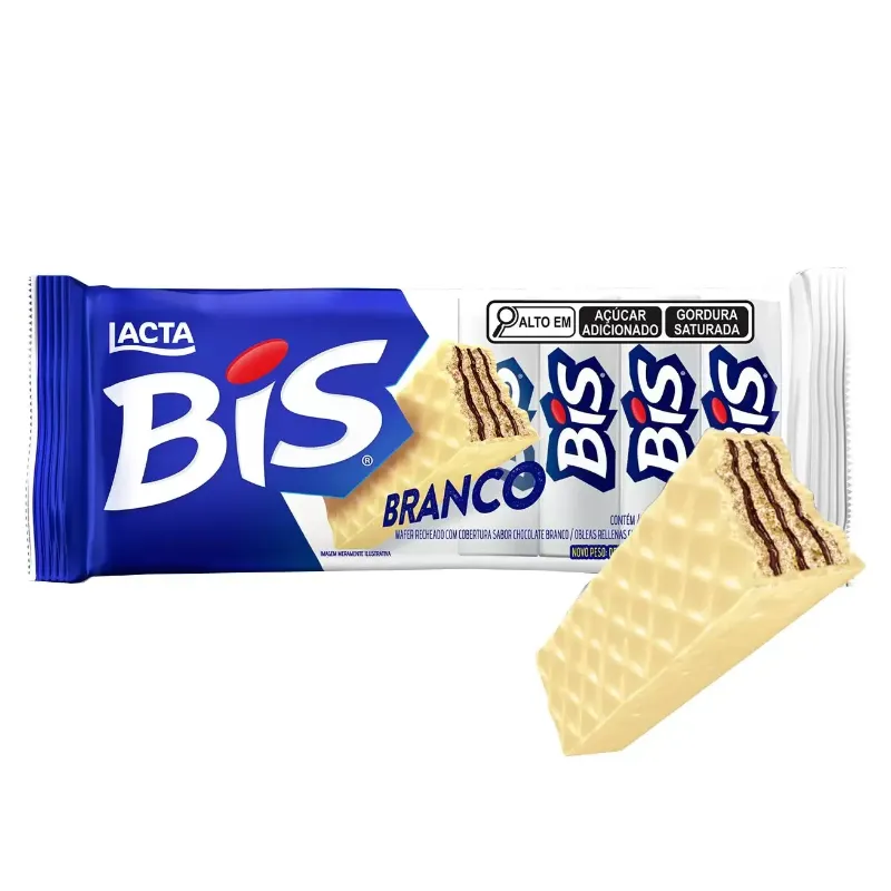 A Lacta tem uma variedade de chocolates, perfeitos para qualquer ocasião. Afinal, seja qual for, chocolate é sempre bem-vindo! O Chocolate Bis Branco é a perfeita combinação do Bis que você já conhece com a cobertura do delicioso chocolate branco Laka. Seu pacote na versão de 100,8g vem com 16 unidades embaladas individualmente para manter a crocância, e é perfeita para dividir com a galera e tornar cada momento ainda mais delicioso. É impossível resistir e comer só um! Atenção: contém Lactose.