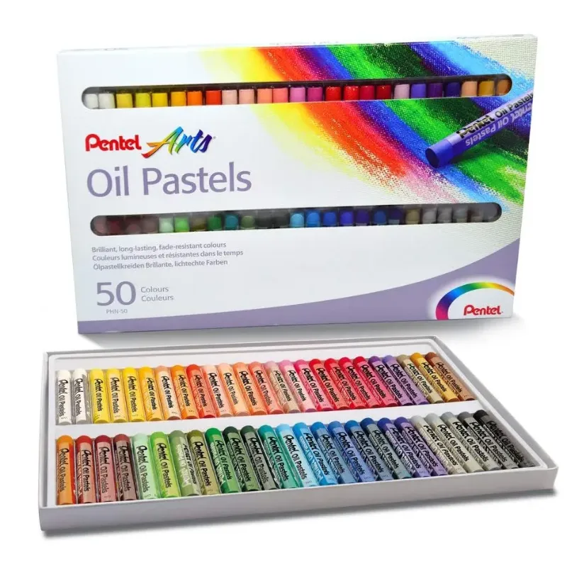 Giz pastel oleoso Pentel para desenhar com 50 cores. O giz pastel oleoso é ótimo para fazer esboços coloridos e trabalhos artísticos, principalmente em papéis de alta gramatura. Qualidade japonesa.