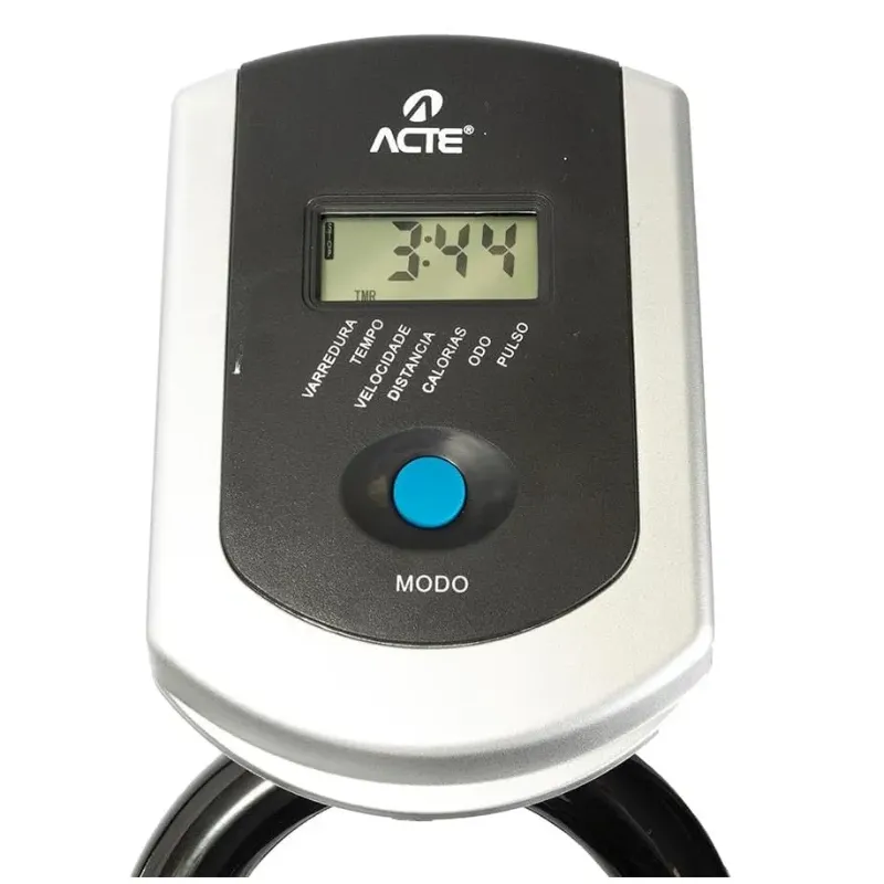 A Bike para Spining ACTE é indicada para uso residencial e é ideal para melhorar o condicionamento físico e a resistência muscular. Ela possui um sistema que simula com perfeição diferentes situações de treino, suporta até 80 kg, possui Roda Livre de 8Kg e é confortável com diversas regulagens de assento e guidão para melhor adequação aos usuários. a bike spinning Acte vem com um ciclo computador, que mede, Varredura, tempo, velocidade atual, distancia da viagem, calorias, distancia atual, seu funcionamento é a base de 02 baterias AA. o sistema de transmissão é por Correia. Em seus pedais, temos o firma pé. o produto completo pesa 25kg, possui rodas para fácilitar locomoção. a bike é uma ótima opção para você que deseja adquirir uma vida saudável, em casa, ou que não tem tempo para atividades fisicas em outros locais. a do produto é de 3 meses, direto com fabricante.! Sua melhor escolha.!!!! Por uma vida mais saudável, sem sair de casa.!!!