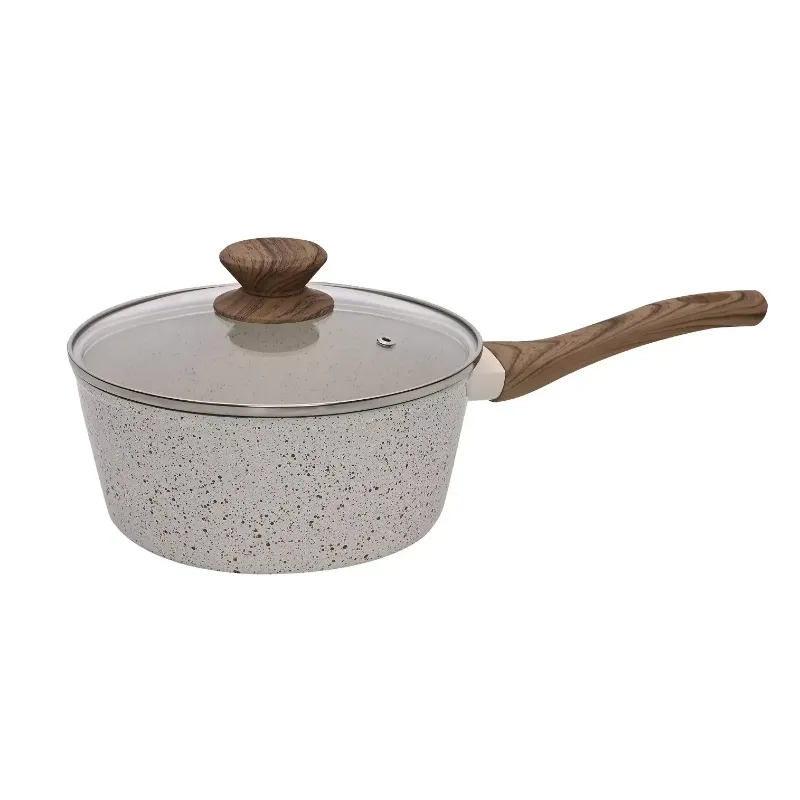 A linha Mármol Cook possui 3 camadas, 2 camadas de revestimento cerâmico e 1 camada resistente a alta temperatura. Com estrutura de alumínio as panelas possuem 4mm de espessura que proporciona uma maior durabilidade do produto, como também mais uniformidade térmica, cozinhando os alimentos de maneira uniforme, sem variações de temperatura. Sem contar que elas também mantêm o calor por mais tempo mesmo fora do fogo, possibilitando refeições aquecidas até mesmo à mesa. Com revestimento soft-touch, toque super macio, em seus cabos e alças, confortável ao segurar e previne queimaduras. Disponível em 2 cores, com estética diferente para todos os gostos.