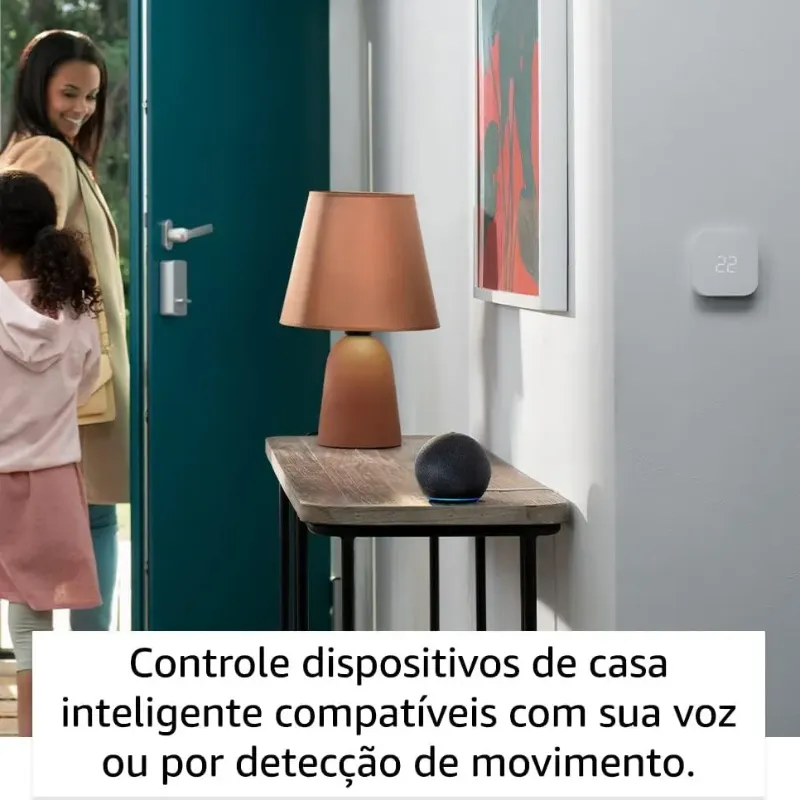Após o pareamento com lâmpadas, plugues e outros aparelhos compatíveis, o Echo Dot permite o controle da sua casa inteligente por voz, movimentos ou a partir da temperatura interna. Crie rotinas para ligar a luz, o ar condicionado ou reproduzir músicas em horários específicos quando você entrar em um ambiente ou quando a temperatura do local estiver diferente do ideal.