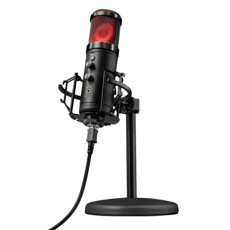O Microfone RGB USB Trust GXT 256 Exxo combina excelência de áudio com estilo. Ele foi desenvolvido para oferecer gravações nítidas e ricas em qualidade de estúdio quase profissional. Apresentando um design atraente, com iluminação LED RGB em diferentes configurações de cores, você pode destacar suas gravações de qualidade com estilo.