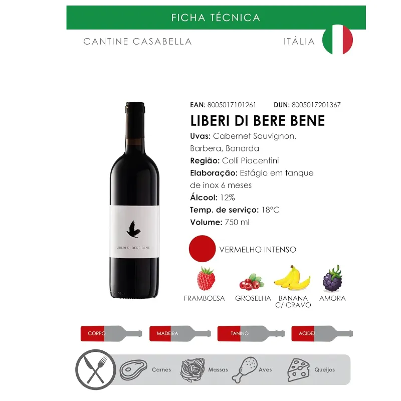 Vinho Tinto Italiano Liberi Di Bere Bene 750Ml