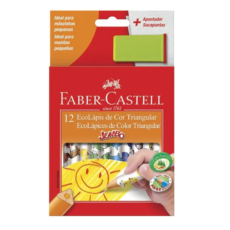 Com Formato Triangular Ergonômico, Os Lápis De Cor Da Linha Jumbo Faber-Castell São Ideais Para Mãozinhas Pequenas, Estimula O Desenvolvimento Psicomotor, Além De Tornar O Processo De Aprendizagem Muito Mais Divertido.