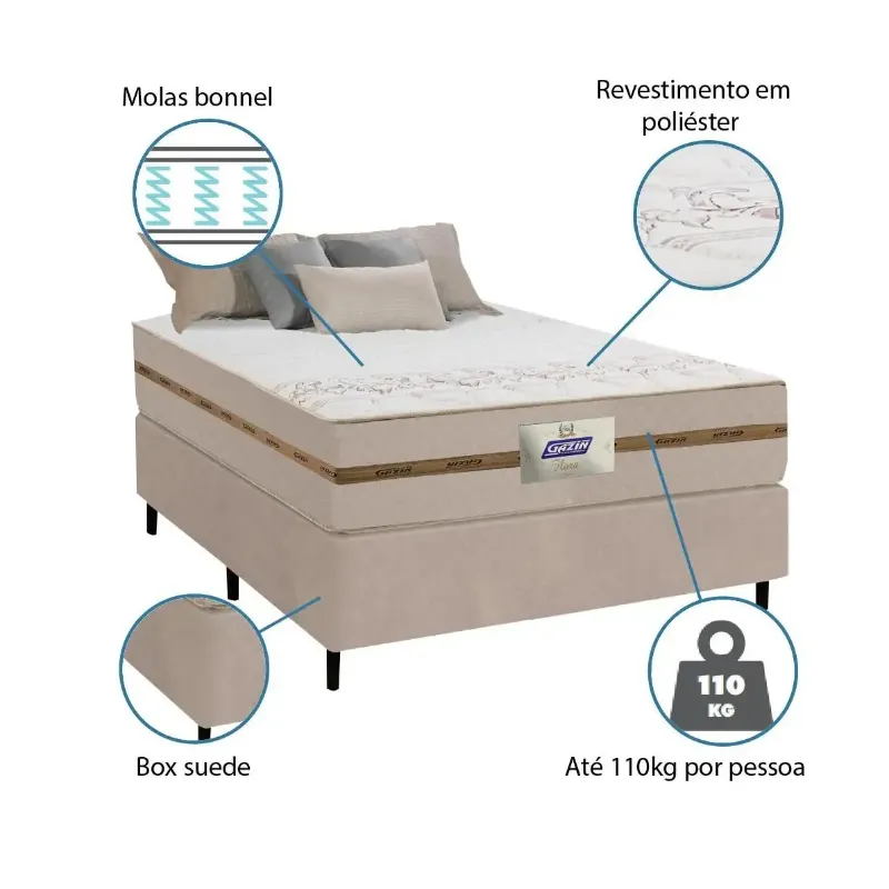 Cama Box Casal Colchão Molas Flora 138x188x60cm - Gazin