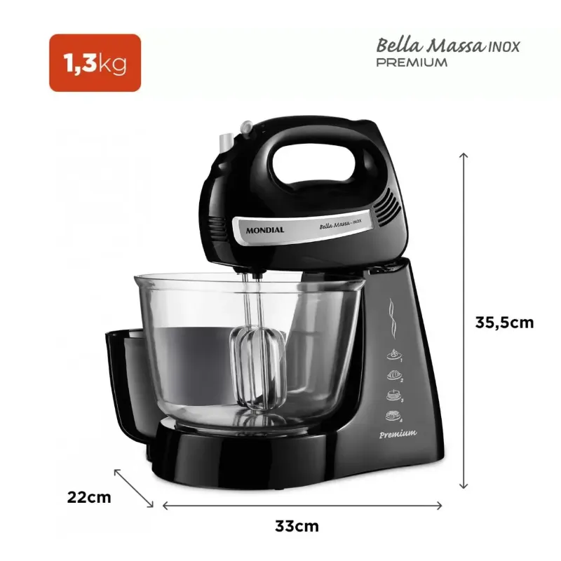 Batedeira Mondial 400W Bella Massa B-23 NP - 4 Velocidades