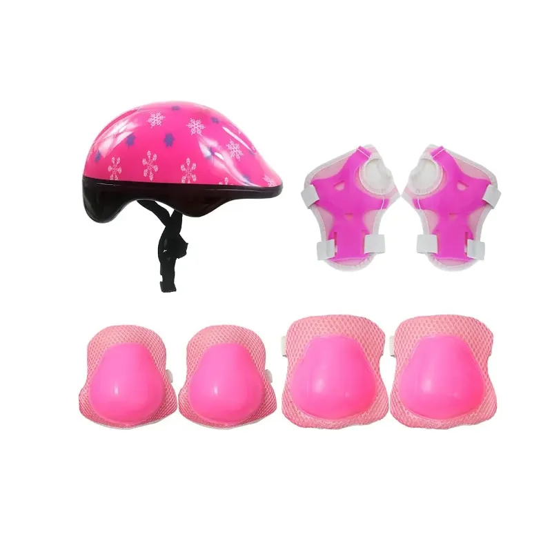 Kit de capacete + 1 par de joelheiras, 1 par de cotoveleiras e 1 par de munhequeiras. Material: poliéster e polipropileno (PP). Tamanho do capacete: M (55 a 59cm).