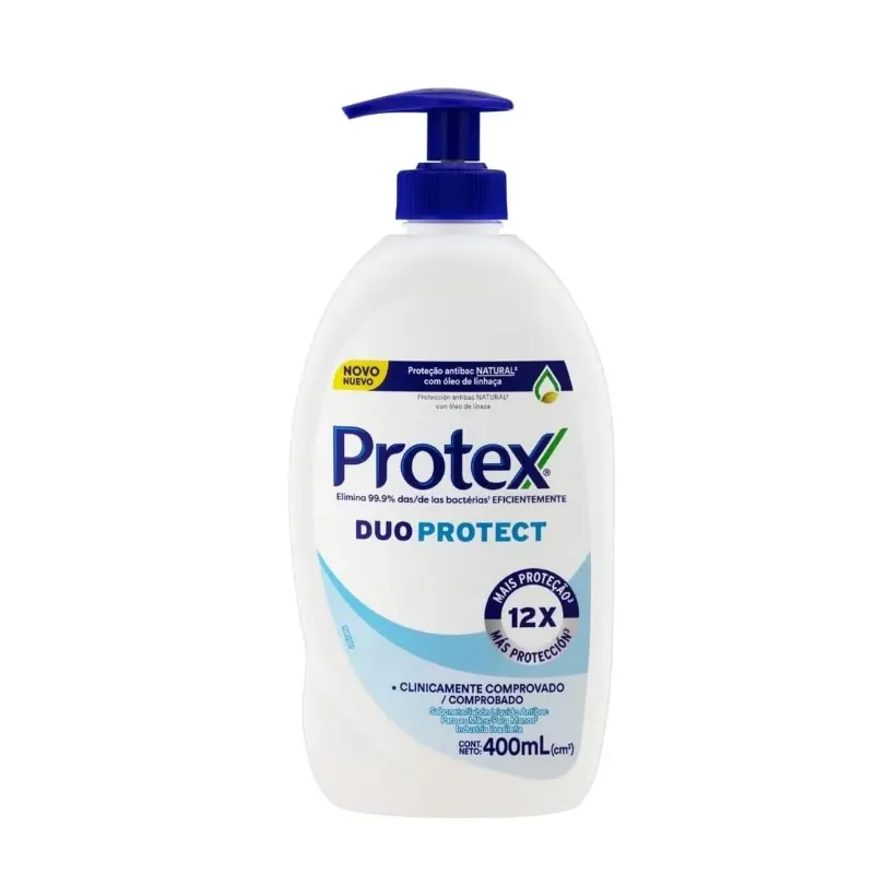 Esse Sabonete Líquido Protex Duo Protect elimina 99.9% das bactérias naturalmente e imediatamente, sua fórmula que contém dois poderosos ingredientes antibacterianos: Óleo de linhaça e Phenoxytenol que oferecem 12 vezes mais proteção.