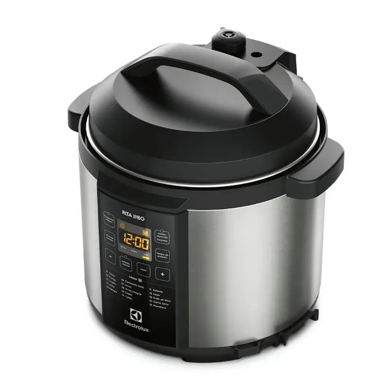 A Panela de Pressão Elétrica Electrolux Experience PCC20 assinada pela Chef Rita Lobo traz praticidade e maior segurança no preparo das refeições, tornando suas receitas deliciosas e saudáveis. Com as 15 receitas e modos de cozimento pré-programados, ela descomplica o preparo de pratos conhecidos. Faça saborosas carnes, mandioca e outras receitas com a facilidade de um toque. Além disso, os 3 níveis diferentes de pressão ajudam a alcançar o ponto ideal de cozimento dos alimentos, desde legumes até diferentes tipos de carnes. Selecione a Função Cozimento Lento para extrair o máximo sabor dos preparos de temperatura branda, como barreado e costela. O produto conta com 10 dispositivos de segurança para sua tranquilidade, como o aviso sonoro e o travamento automático da tampa ao atingir a temperatura de pressão. A panela interna antiaderente de 6 litros é ideal para fazer receitas que servem toda a família. Por ser removível e antiaderente, é fácil de limpar. O display em LED oferece a Função Programar Preparo, que permite planejar o início do cozimento de suas receitas com até 24 horas de antecedência, para que você encontre sua refeição pronta no horário que preferir. O cabo elétrico removível facilita o transporte da panela, permitindo colocá-la na mesa para servir seus alimentos com mais praticidade. Com acabamento em aço inox escovado, oferece modernidade, além de ser durável e fácil de limpar.