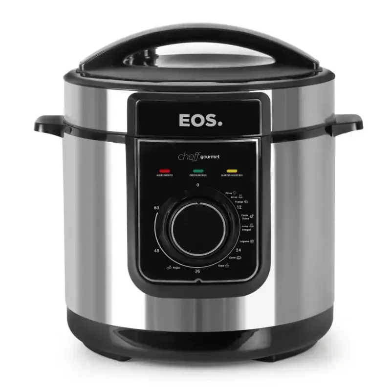 A panela de pressão elétrica EOS chegou para dar maior segurança e praticidade na sua vida. Com 5l de capacidade, a panela EOS permite que você cozinhe para toda sua família. Seu timer mecânico é fácil de programar e permite que você coloque até 1 hora de preparo e seu painel com led's informa todas as etapas do preparo, desde o aquecimento, passando pela pressurização até a conclusão, mantendo aquecido os alimentos até o momento do consumo. Para a maior segurança de sua família as panelas EOS possuem 9 diferentes dispositivos de proteção anti-falha, sendo muito mais segura do que um modelo convencional. Seu recipiente interno é graduado, facilitando a medição das receitas, antiaderente e removível, para facilitar a limpeza. Experimente a praticidade e segurança que a EOS traz para você, experimente a linha EOS Cheff Gourmet.