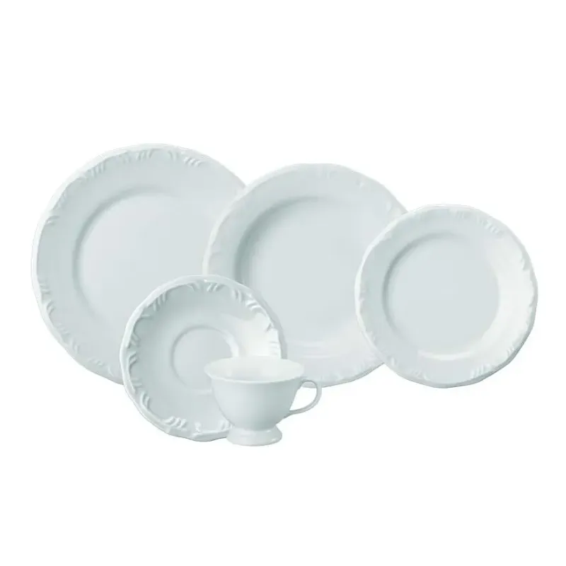 Serviço de Jantar e Chá 30 peças em Porcelana. Modelo Redondo com Relevo Pomerode. Branca. Fabricado pela Schmidt.