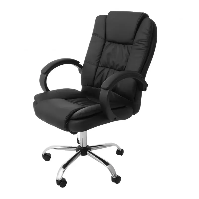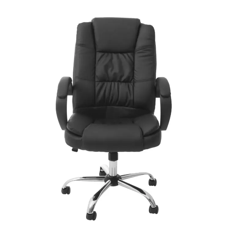 A cadeira de escritório PRE-002 preta possui estilo presidente, é giratória e com estofado. Isso facilita o seu dia a dia, como pegar arquivos ou se movimentar de um lado para o outro. Com um peso suportado de até 90Kg, tem assento e pés reguláveis para que você usufrua o que esta cadeira pode lhe oferecer. Este produto não é indicado para uso contínuo.