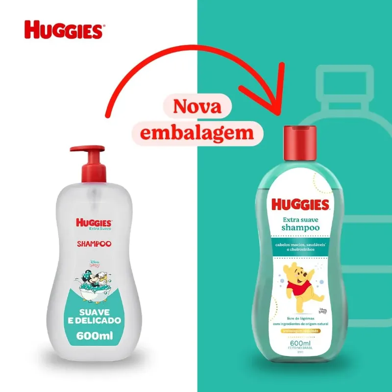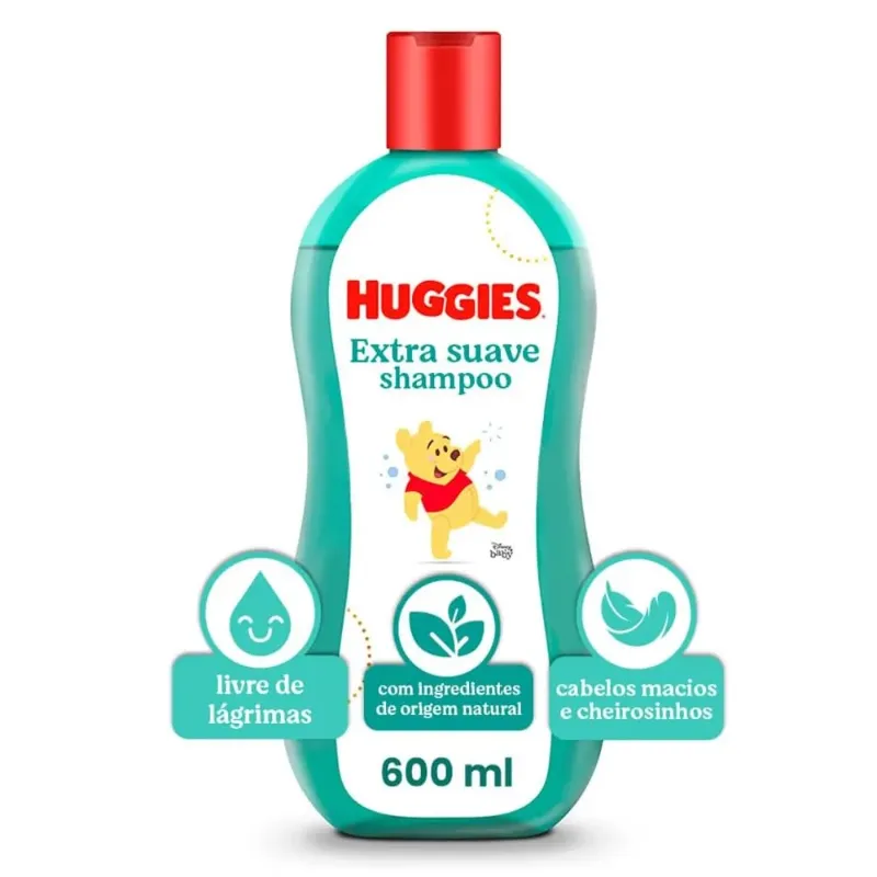 Conheça o Shampoo Huggies Extra Suave, que garante os cabelos macios, saudáveis e cheirosinhos. Ele foi cuidadosamente desenvolvido para ser livre de lágrimas, não irritando os olhos. Além disso é feito com ingredientes de origem natural, sem adição de parabenos e corantes, seguro para a pele e cabelos do seu bebê. Lembrando que esse produto é aprovado pelos pediatras e dermatologicamente testado. E pensando no meio ambiente, a embalagem é 97% reciclada, 100% reciclável e reutilizável. Venha desfrutar de uma experiência completa de cuidado com o Shampoo Huggies Extra Suave. Huggies Extra Suave - Shampoo Infantil, 600ml. Embalagem pode variar