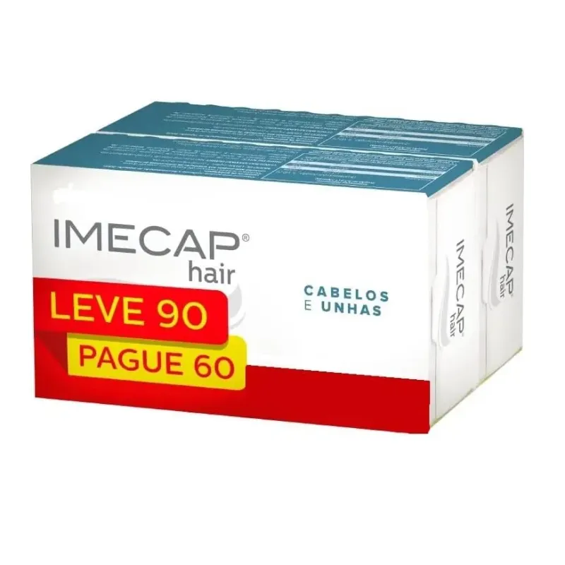 Imecap® Hair é formulado com importantes nutrientes que atuam de dentro para fora, ajudando no crescimento saudável e fortalecimento dos cabelos e das unhas. Cápsulas de uso oral, indicadas para homens e mulheres, nutrem e fortalecem os fios, prevenindo a queda capilar.