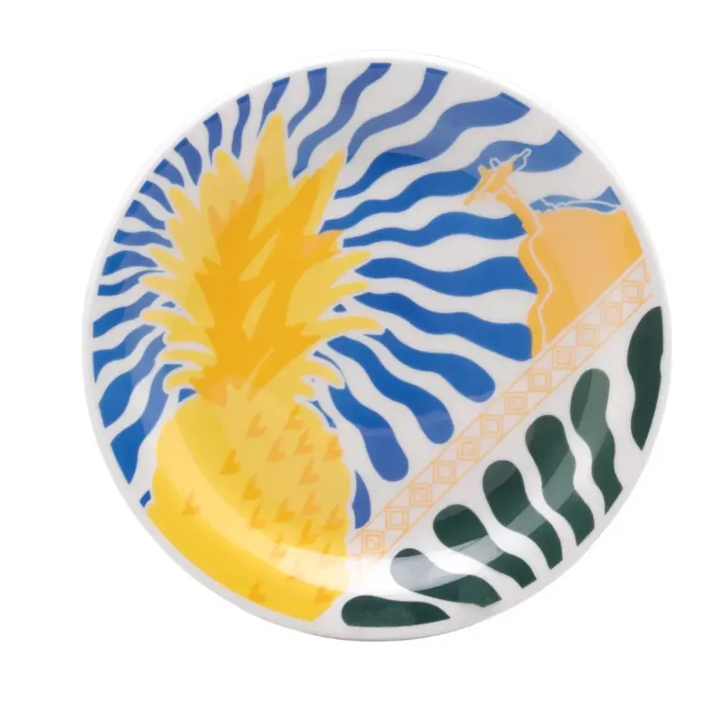 Das raízes, a mais autêntica inspiração. Assim é a coleção Salada Tropical que reúne a curadoria de muitos dos elementos que representam o Brasil mundo afora. Frutas tropicais típicas da nossa terra, como caju, abacaxi e jaca, são o destaque dos pratos, junto de referências a pontos turísticos marcantes como os Arcos da Lapa e o Cristo Redentor. Traços indígenas e a inspiração na arte modernista dão o toque final nessa coleção cheia de tropicalidade e cor!