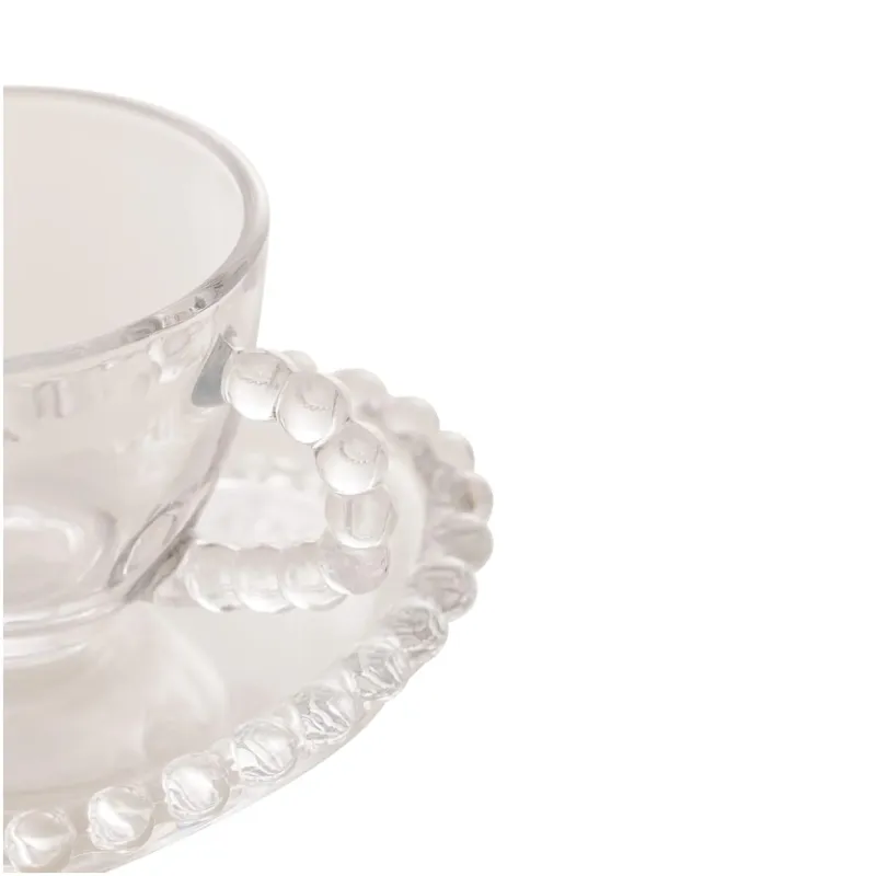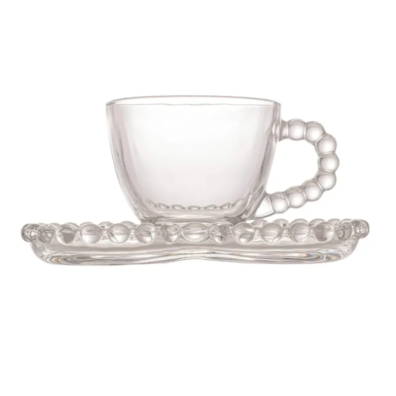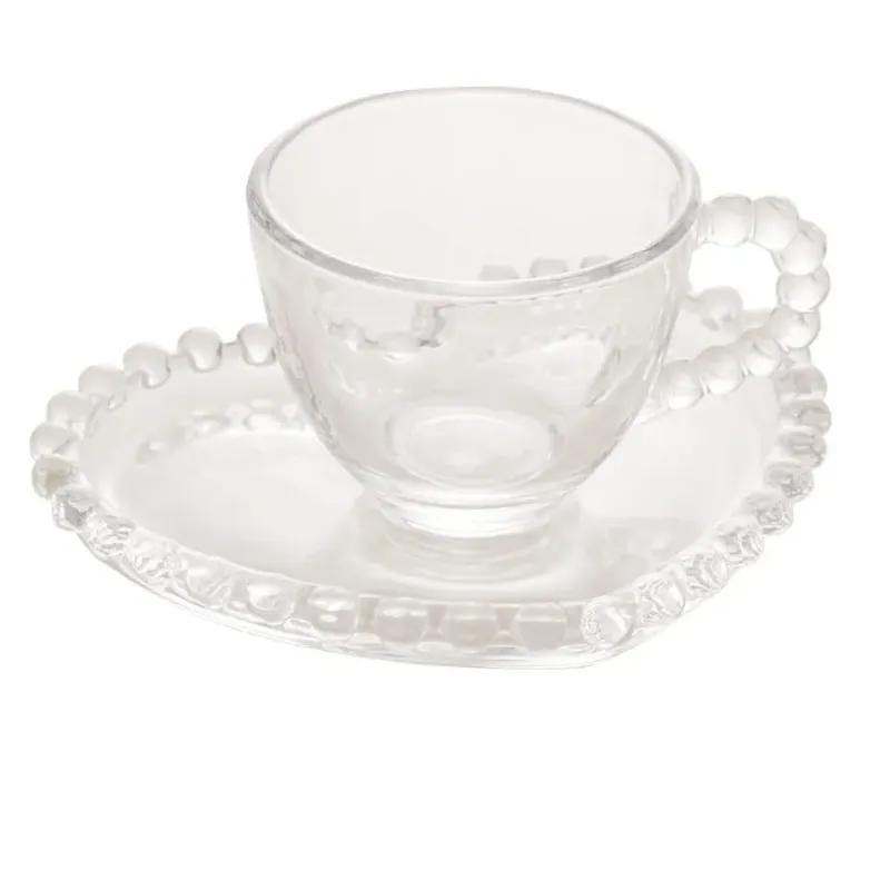 Wolff Coração Pearl Conjunto de Xícaras para Café com Pires de Cristal 4 Peças, Transparente, 85 ml