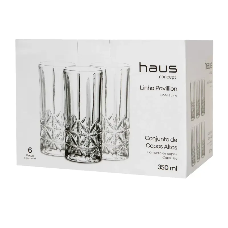 Jogo de Copos de Vidro 350ml 6 Peças Haus - Pavillion