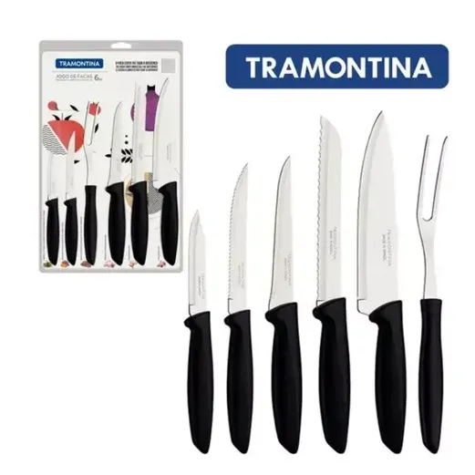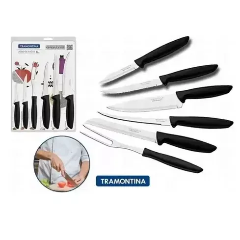 Jogo De Facas 6 Peças Aço Inox Faqueiro Churrasco Tramontina Cor