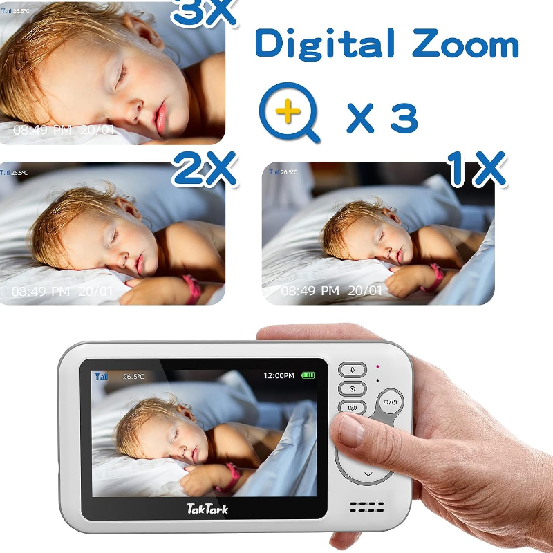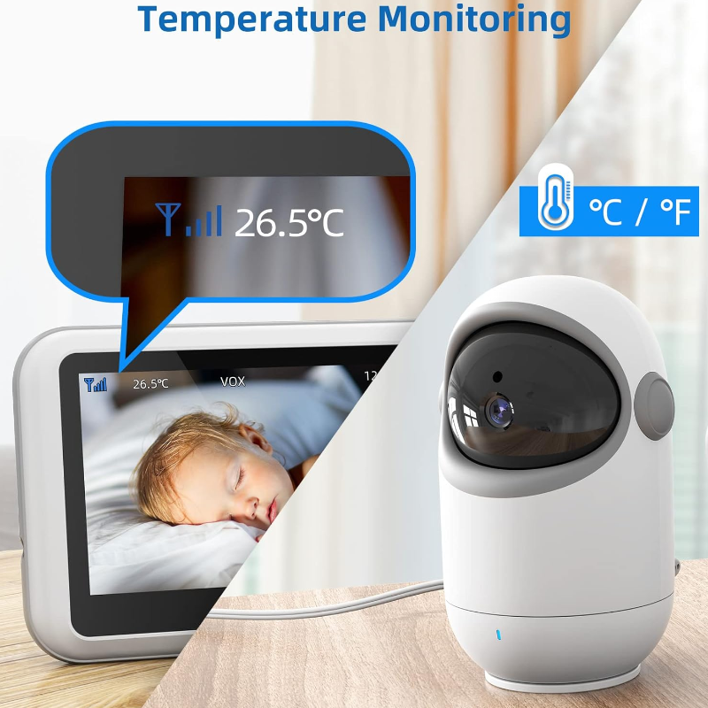 Com o sensor de temperatura da câmera, a unidade de câmera pode continuar detectando as temperaturas do quarto do bebê, e você saberá disso no monitor.