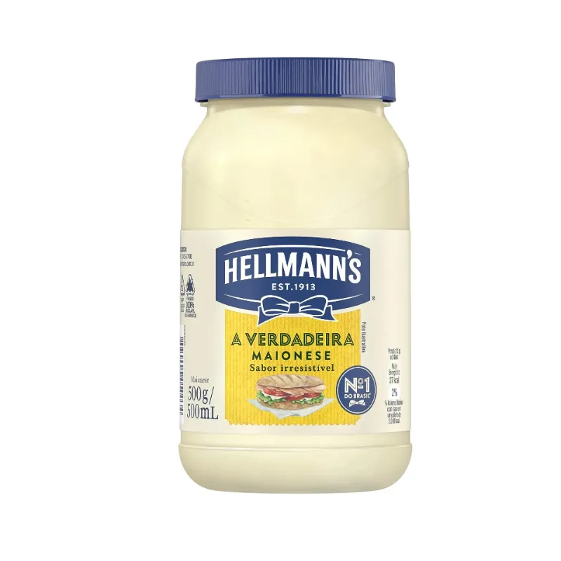 • A Maionese Tradicional Hellmann's com sabor tradicional e cremosidade incomparável transforma seus lanches e refeições em deliciosos momentos • Com ingredientes de alta qualidade selecionados de fazendas sustentáveis e óleo de soja, sendo este óleo fonte de ômega 3 e 6 • Com sabor delicioso e cremosidade incomparável, Hellmann's é a maionese N°1 do Brasil* • Feita com ovos caipiras, sem corantes ou aromas artificiais em seus ingredientes. Cada pote de Maionese Hellmann's é 100% reciclável • Com a nossa maionese tradicional Hellmann's você sempre estará preparado para transformar de uma maneira rápida e fácil o que resta na sua geladeira em deliciosas refeições • Sem ideias do que fazer com os ingredientes que serão desperdiçados? Não os desperdice. Com Hellmann’s, tudo fica com mais sabor. Veja as nossas receitas! Com a Maionese Tradicional Hellmann's você pode transformar seus lanches e refeições em deliciosos momentos e ainda adicionar sabor e cremosidade incomparáveis aos seus pratos. Nós na Hellmann's acreditamos que o segredo para o sabor está nos ingredientes que você utiliza em suas receitas. Por isso, nos dedicamos para oferecer uma cremosidade sem igual e utilizamos somente ingredientes de alta qualidade, como ovos caipiras e óleos de fazendas sustentáveis, para criar uma maionese que proporcione aos nossos consumidores um sabor irresistível e sem comparação. A Maionese Tradicional Hellmann's é cremosa, tem 37 kcal por colher de sopa (12 g) e possui ômega 3 e 6, provenientes do óleo de soja, e não contém corantes ou aromas artificiais em seus ingredientes, resultando em um produto delicioso e mais saudável. Além disso, Hellmann's é super versátil e deixa seus lanches, sanduíches, patês, wraps, salada de batata, molhos, saladas, acompanhamentos de churrasco, receitas para festas de fim de ano ainda mais gostosos. Por isso e muito mais, Hellmann's é a maionese N°1 do Brasil*. Mais sabor, menos desperdício. A comida é importante demais para ser desperdiçada, por isso na Hellmann’s investimos na versatilidade de nossos produtos. Isso permite que você transforme o que restou em sua geladeira em verdadeiras e deliciosas refeições. Inspire-se com as nossas receitas. Com a Maionese Tradicional nada se desperdiça, tudo se aproveita. Experimente você também! Mais que sabor, sabor Hellmann's! *Maionese mais vendida do Brasil. Fonte: Nielsen.