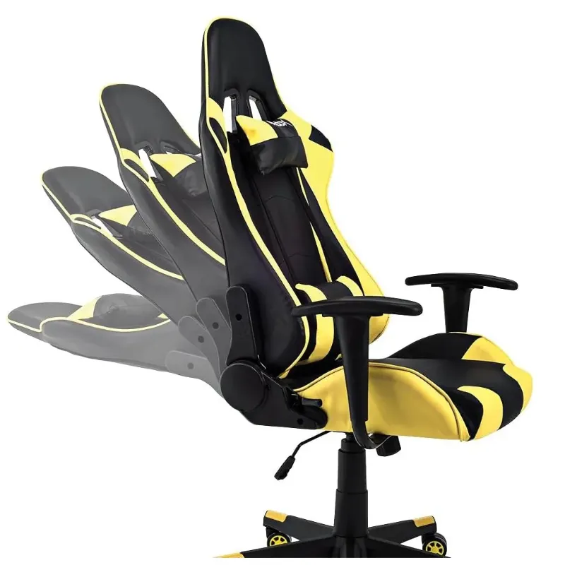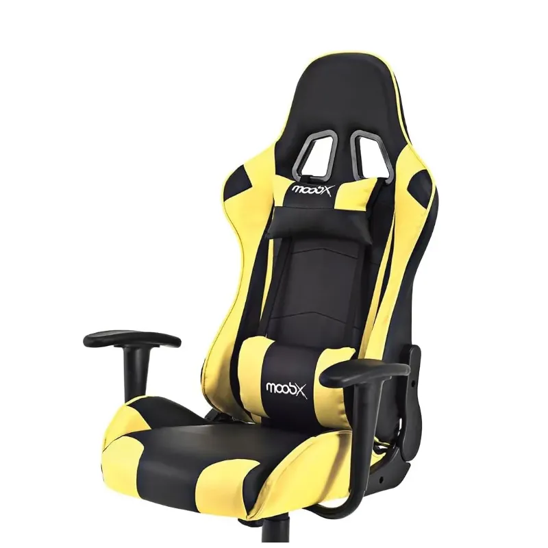 "Cadeira Gamer Moob GT Racer Reclinável 180º Braços Com Regulagem de Altura Almofadas Para Lombar e Pescoço Preto/Amarelo Qualidade, design diferenciado e produtos que se encaixam perfeitamente no seu ambiente gamer! As cadeiras gamer da linha GT RACER são a opção ideal para os games mais desafiadores e irados. Sinta adrenalina a cada jogo! A Moob GT Racer combina estilo e ergonomia em um único pacote impressionante. Seu design elegante e moderno, na cor preta com detalhes em amarelo, adiciona um toque de sofisticação ao seu espaço de jogo. Com um encosto reclinável você pode encontrar a posição perfeita para relaxar e jogar com total comodidade. Além disso, a cadeira possui almofadas especiais para lombar e pescoço, proporcionando um suporte extra para essas áreas importantes do corpo. Essas almofadas ajudam a aliviar a pressão e a tensão, garantindo uma postura correta e confortável durante suas longas sessões de jogo. INFORMAÇÕES TÉCNICAS: - Marca: Moob - Modelo: GT Racer - Função basculante com parte traseira reclinável, com ajuste de até 180°. - Apoio de cabeça menor e almofada para lombar que aumenta o conforto e suporte no dia a dia. - Assentos especiais com espuma injetada de 50Kg/m³ - Cilindro com 100mm de regulagem de altura - Apoio de braço macio - Rodinhas reforçadas de 65mm. - Estrutura em aço - Base com reforço interno ainda mais resistente e pintura especial ""black piano"". - Cor: Preto com Amarelo Dimensões máximas do produto montado (cm): 140,0 (A) x 65,0 (L) x 65,0 (P) Peso do produto montado (kg): 20,0 * Veja mais detalhes das medidas nas fotos do anúncio do produto. - Garantia: 3 meses - As cores podem variar conforme monitor/smartphone utilizado para a visualização do anúncio ou até mesmo pela percepção do usuário. - Não oferecemos serviço de montagem, portanto não nos responsabilizamos pela instalação/montagem deste produto. - Imagens meramente ilustrativas. "