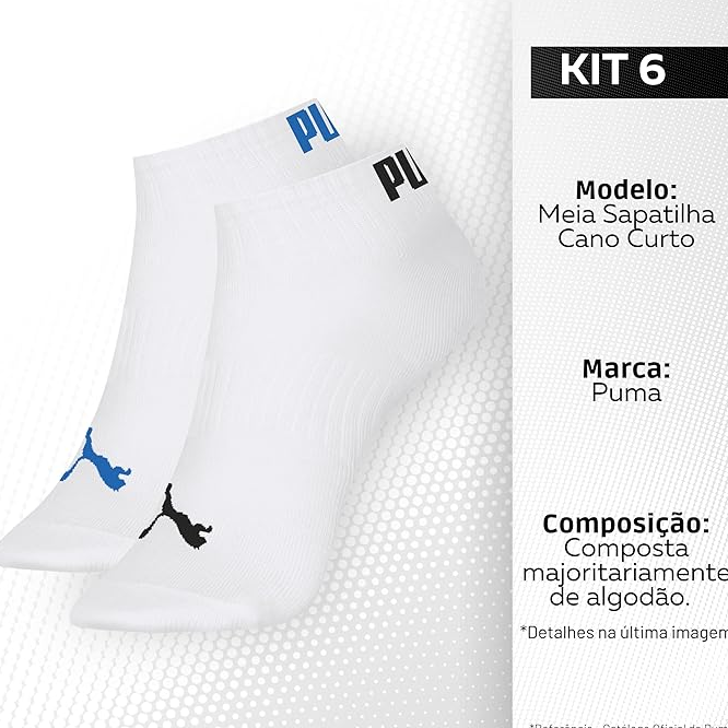 Kit 06 Pares de Meia Puma Sapatilha Cano Curto