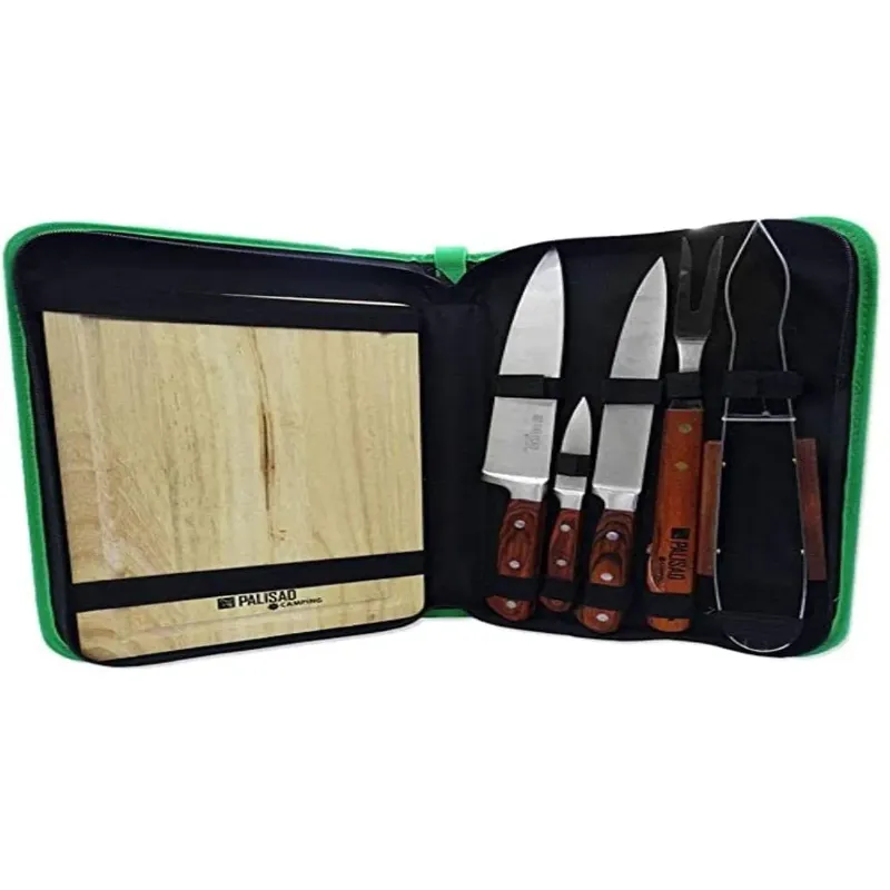 Kit para Churrasco - Inox Ideal para churrasqueiros, cozinheiros, levar para pescarias, camping, e uso geral Excelente opção para presentear. Composição Aço inox e madeira. Conjunto com 8 peças: 1 Tábua de madeira (30 x 20 x 1, 5 cm) 1 Faca para carne Chef 9 1 Faca para carne Chef 8 1 Faca para legumes 4 1 Pegador de carne 1 Estojo com zíper 1 Garfo trinchante 1 Avental.