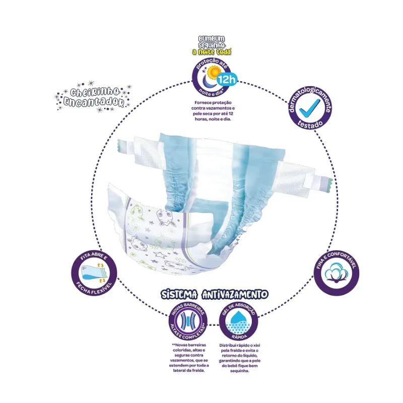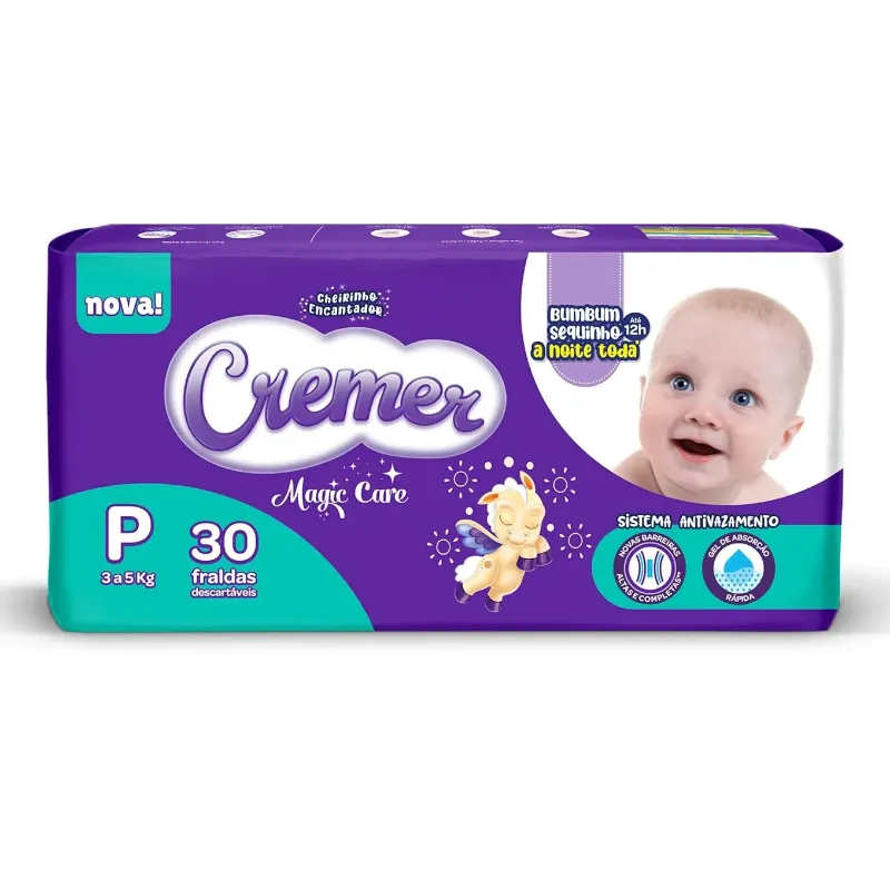 A nova fralda Cremer agora está mais fina e mais confortável, com proteção até 12h contra vazamentos! Além disso a fralda conta com um novo sistema antivazamento, composto por uma nova fita abre e fecha mais flexível e orelhas maiores que se ajustam ao corpinho do bebê, e uma camada super absorvente que distribui rápido o xixi pela fralda e evitando o retorno do líquido e garantindo que a pele do bebê fique bem sequinha. A nova Cremer traz proteção para noites tranquilas e dias mágicos, ainda mais confortáveis.